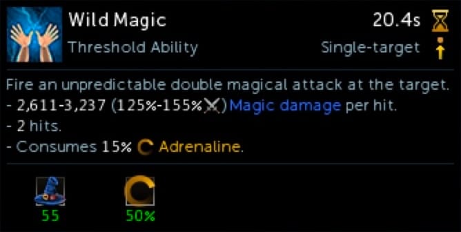 Threshold Ability: Threshold abilities are your next step up. They will deal a moderate to large amount of damage. Every threshold ability costs 15% adrenaline to use, but can only be cast when you have over 50% adrenaline. For example, if you have 40% adrenaline, you cannot cast a threshold. If you have 60% adrenaline, you can, and your adrenaline will go down to 45% when cast.